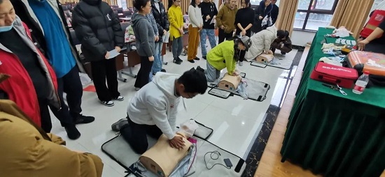 培訓(xùn)采用主講+助教、理論+實(shí)踐相結(jié)合的形式開展,柯橋區(qū)紅十字應(yīng)急救護(hù)培訓(xùn)師主講。從紅十字會(huì)的發(fā)展歷史,結(jié)合典型案例,用生動(dòng)、形象的語言對(duì)救護(hù)概念、心肺復(fù)蘇(含AED使用)、海姆立克急救法、創(chuàng)傷救護(hù)基本技能、意外傷害(淹溺、中暑)等進(jìn)行了系統(tǒng)講解,重點(diǎn)演練了心肺復(fù)蘇(含AED使用)、止血包扎等常用急救措施,強(qiáng)調(diào)了應(yīng)急救護(hù)“黃金四分鐘”的重要性。四名助教針對(duì)參訓(xùn)人員練習(xí)中的操作、動(dòng)作不規(guī)范等情況,進(jìn)行“手把手”指導(dǎo),確保每一個(gè)動(dòng)作規(guī)范、準(zhǔn)確、到位。