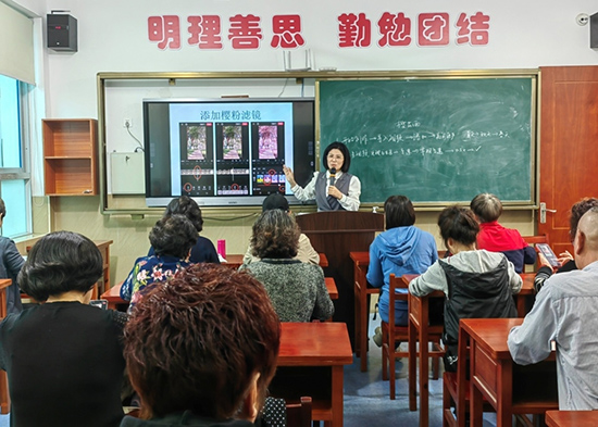 吳老師的課堂學員們學習熱情很高,不僅認真傾聽,不明白的地方還舉手示意向老師請教,甚至下課或是課后時間都拉著老師問個仔細,學得意猶未盡。“以前我的手機都只是用來打打電話,子女不在身邊,手機很多功能都不會用,現在上了這個課,不僅學會了用手機拍照發朋友圈,還學會了用支付寶付錢、預約掛號、公交路線查詢等,對我的生活方便了很多,真的太感謝吳老師和老年大學了。”一位銀發老伯激動地說。”又一位學員自豪地說,“我現在和姐妹們出去玩拍的照片,不僅可以自己修圖剪輯,還可以制作成短視頻發朋友圈與大家分享,孫女看了說奶奶現在也很潮,緊跟時代節奏。”