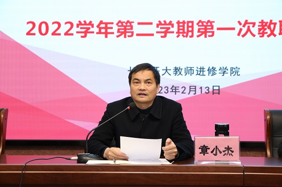 新開局綻放新氣象,新目標(biāo)指引新未來(lái)。2月13日上午,長(zhǎng)興開大教師進(jìn)修學(xué)院召開以“接續(xù)奮斗,實(shí)干爭(zhēng)先,共創(chuàng)學(xué)院發(fā)展新境界”為主題的開學(xué)工作會(huì)議,部署新學(xué)期相關(guān)工作。會(huì)議由學(xué)院黨總支書記、院長(zhǎng)章小杰主持。