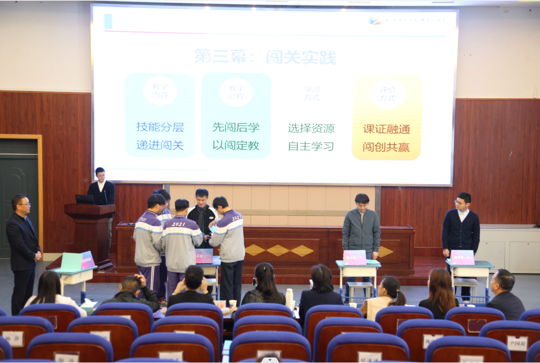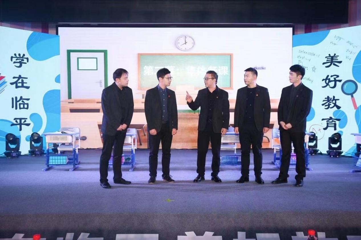 從師德師風、學科建設、教學創新等10個方面選取主題,團隊共同努力、集中討論、頭腦風暴,最終選取了穿插舞臺劇的形式,展現臨平職業高級中學如何讓學生從“厭學”變“樂學”。過程中,通過常態化的舞臺劇排練,安排專業人員指導演技,不斷磨合修改敲定劇本,最終生動演繹了闖關教學模式的動態生成。