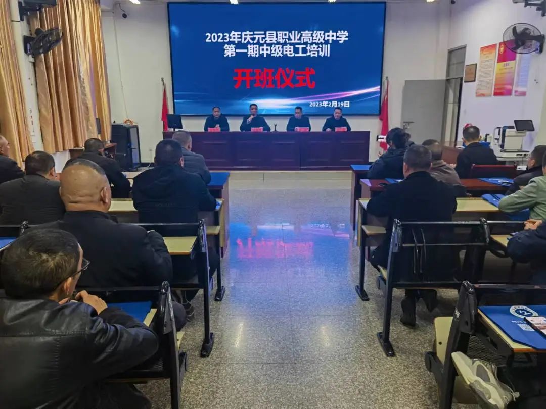 2月19日晚,2023年首期中級電工社會培訓班開班儀式在慶元縣職業高級中學階梯教室舉行。慶元縣職業高級中學黨總支書記范壽鵬、慶元縣人力資源和社會保障局人才開發管理科科長陳沖及信息中心副主任練正健、慶元縣就業管理服務處主任吳君衛及副主任吳菁華參加會議,會議由實習就業處主任吳廣貴主持。本期培訓學員來自縣內各企業的電工從業人員。