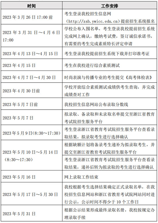 注:(1)考生填寫《義烏工商職業技術學院2023年素質特長評定申請表》(可在我校招生信息網站下載),憑個人高中階段所獲得的相關比賽獲獎證書,于4月1日-6日17:00通過我校提前招生管理系統申請。(2)獎狀獲得時間需在高中階段且在我校報名截止日期之前;素質特長評定最高不超過20分。