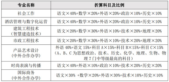 普高招生考生是將考生的高中學考成績等級折算為相應的分值,再按各招生專業的學考科目折算規則進行折算,滿分100分,四舍五入后保留兩位小數。普高招生考生學考科目成績具體折算表如下: