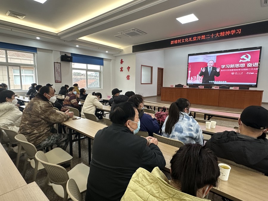 宗漢社區(qū)教育中心充分利用慈禮堂、微信群、視頻平臺(tái)等網(wǎng)絡(luò)平臺(tái)學(xué)習(xí)宣傳黨的二十大精神,定期發(fā)布黨的二十大精神相關(guān)知識(shí),宣傳報(bào)道社區(qū)最新學(xué)習(xí)動(dòng)態(tài),將學(xué)習(xí)內(nèi)容上傳至黨員微信群、居民微信群,打造全天候、開(kāi)放化的學(xué)習(xí)平臺(tái),方便黨員群眾以“線上+線下”的形式學(xué)習(xí)貫徹黨的二十大精神。1月31日,宗漢社區(qū)教育中心聯(lián)合宗漢街道各村干部群眾在新塘村文化禮堂組織開(kāi)展二十大精神視頻學(xué)習(xí)——《學(xué)習(xí)新思想,奮進(jìn)新征程》,各社區(qū)黨員、流動(dòng)黨員共百余人學(xué)習(xí)。
