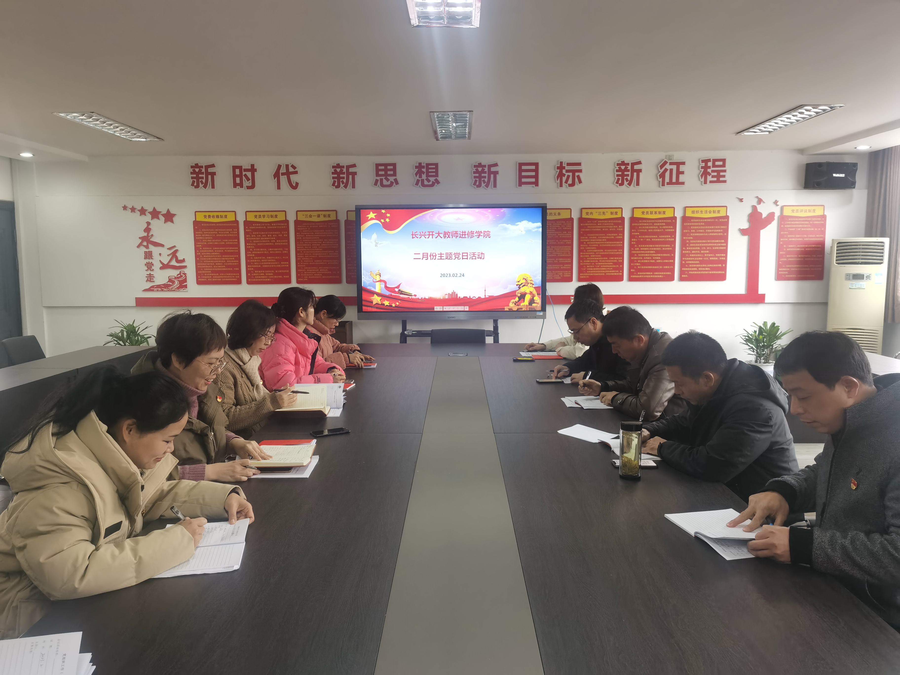 2月24日上午,長(zhǎng)興開大教師進(jìn)修學(xué)院黨員,在黨員活動(dòng)室開展“提升自我 再創(chuàng)佳績(jī)”主題大討論活動(dòng)。