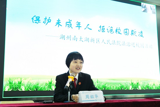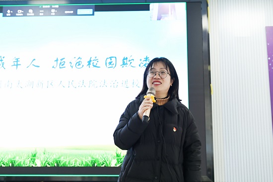 為加強對校園欺凌事件的預防與處理,關注學生心理健康,提高學生法律意識,2月24日下午,浙江信息工程學校特邀湖州南太湖新區人民法院法官助理周韶華來校,開展“保護未成年人,拒絕校園欺凌”主題法治教育講座。本次講座由學生處副處長蔣芬芬主持,并通過線下觀看、線上直播相結合的方式進行,各班安全聯絡員在二號階梯教室集中觀看,其余師生通過釘釘直播觀看。