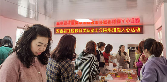 臨近三八婦女節,為了服務兄弟學校,安吉縣社區教育學院孝豐分院近日特別開設了烘焙暖人心之女神節慶祝活動。邀請了烘焙老師楊晹授課。來自杭垓小學和天荒坪幼兒園的50多位女教師參加活動。