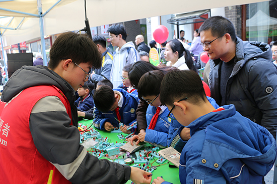 來自電子與電氣專業部的志愿服務隊開展“探索電子奧秘 張揚青春風采”科普體驗志愿服務活動。師生志愿者利用精心制作的展覽作品,通過技能展示等喜聞樂見的形式,深入淺出地為市民普及電子電路的奧妙,并讓市民親身體驗電子電路的組裝過程,以及體驗無人機模擬操控,感受電子科技魅力。