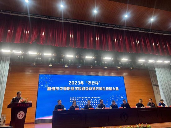 近日,由湖州市職業教育與成人教育研究中心主辦,中國農業銀行湖州分行支持的2023年“農行杯”湖州市中等職業學校財經商貿類師生技能大賽在長興技師學院舉行。中國農業銀行湖州分行副調研員姚納中、分行機構業務部副總經理姚少英、湖州市教育局職成教處處長吳小健、湖州市職成教研究中心主任閔惠敏等嘉賓和師生共計兩百余人參加開幕式。