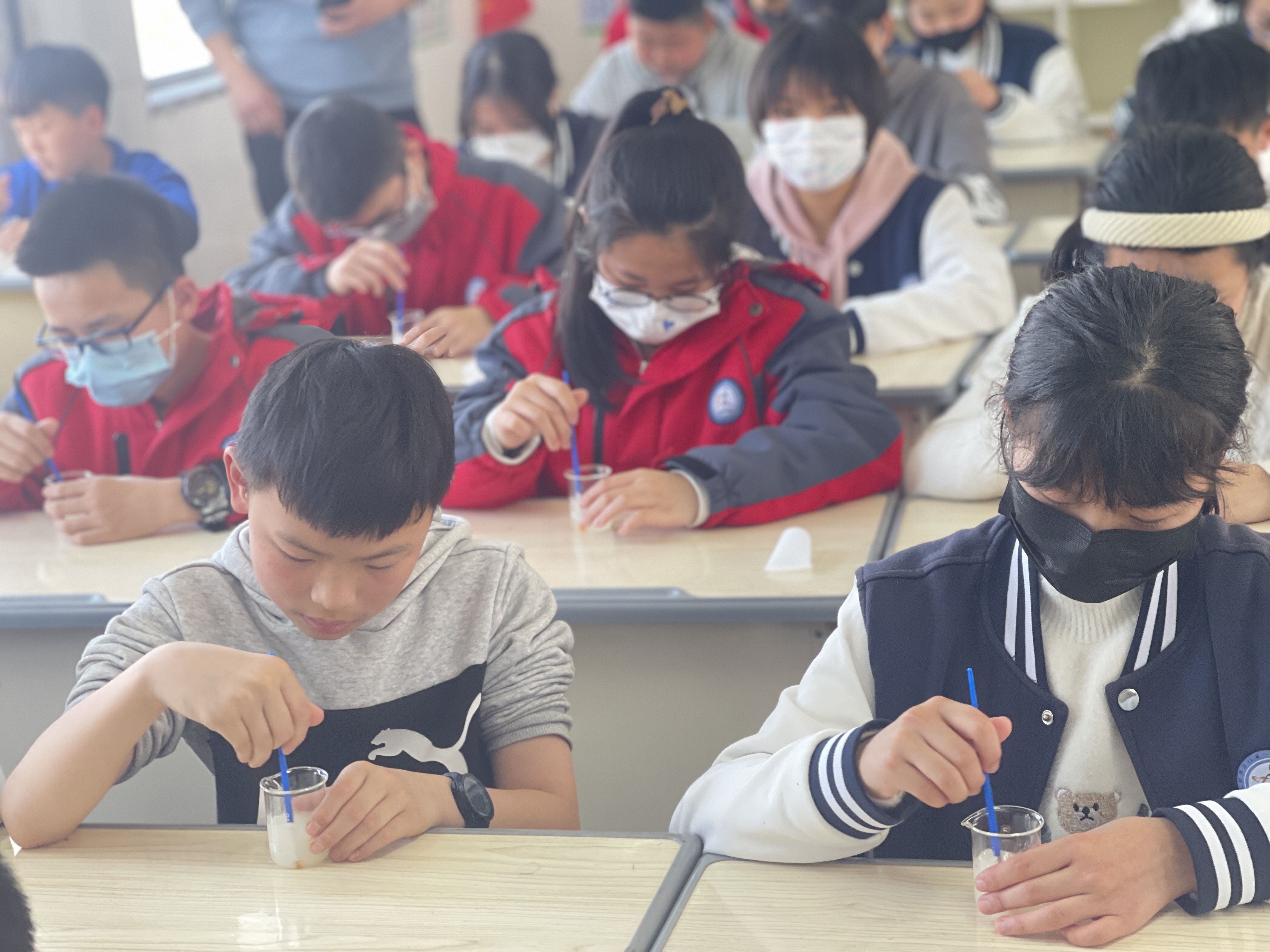 活動開始,同學(xué)們有序進入教室,早已準備好實驗器材的老師,安排同學(xué)們分組后,開始細致講解制作護手霜的相關(guān)原理和過程。同學(xué)們隨著老師清晰的思路,精彩的解說,不時地辨認自己面前的試驗材料。在充分了解了實驗過程的基礎(chǔ)上,同學(xué)們都迫不及待地開始了制作。大家將各種材料依次加入,混合攪拌,不一會兒,甜橙、玫瑰、薰衣草……激動人心的時刻到來了,散發(fā)出清香的護手霜在同學(xué)們認真細致的操作下誕生了,整個教室都散發(fā)出各種迷人的香味。有的同學(xué)還即刻涂起護手霜,露出成功的笑容。有同學(xué)發(fā)出感嘆,原來護手霜也可以像做蛋糕、烤曲奇餅?zāi)菢佑H手做出來……科學(xué)真是太神奇了!好玩有趣的護手霜DIY活動,既培養(yǎng)同學(xué)們的動手能力,又讓他們感受到化學(xué)的魅力,感受到知識的“滋潤”!