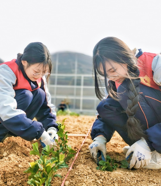 學生分組開展植樹護樹活動,校外的小分隊為街邊的行道樹悉心地涂上保護層,校內的組員們認真地栽下一棵棵樹苗。每一位同學都通過自己的實際行動,為美麗家園、美好生態增添一片新綠,貢獻自己的一份力量。