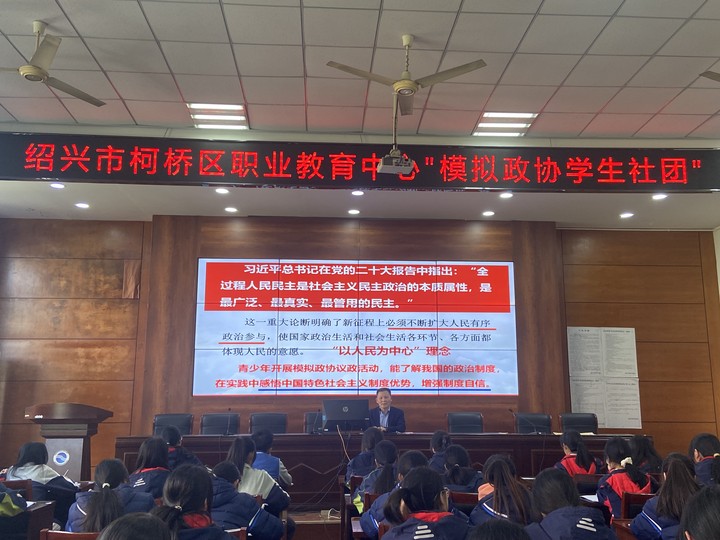 為進一步開展青年思想政治引領(lǐng)、深化青年制度自信教育,發(fā)揮學(xué)生社團育人功能,促進模擬政協(xié)學(xué)生社團規(guī)范化建立和發(fā)展。近日,紹興市柯橋區(qū)職業(yè)教育中心(高級技工學(xué)校)模擬政協(xié)學(xué)生社團開啟了第一堂課,由社團指導(dǎo)老師金海華老師擔(dān)任主講。金老師曾擔(dān)任柯橋區(qū)第一屆人大代表,人大常委會委員,現(xiàn)任柯橋區(qū)第二屆政協(xié)委員。