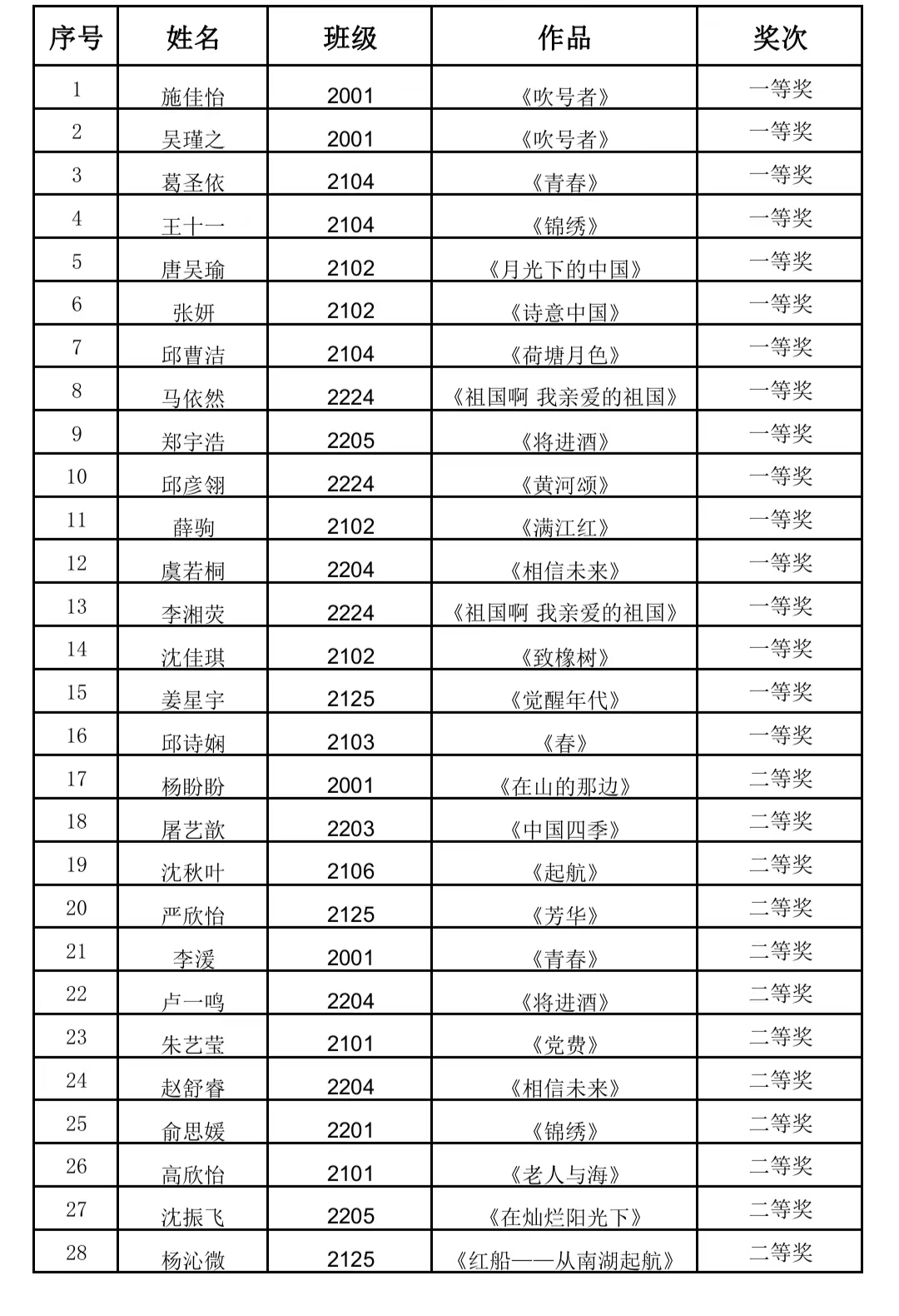 本次活動為廣大學(xué)生提供了展示、鍛煉自我的平臺,深化了同學(xué)們濃烈的愛國情懷,增強了新時代中職學(xué)生的文化自信,展現(xiàn)了朝氣蓬勃、銳意進(jìn)取的良好風(fēng)貌。活動最終評出一等獎16名,二等獎19人,三等獎11人。(章璇)