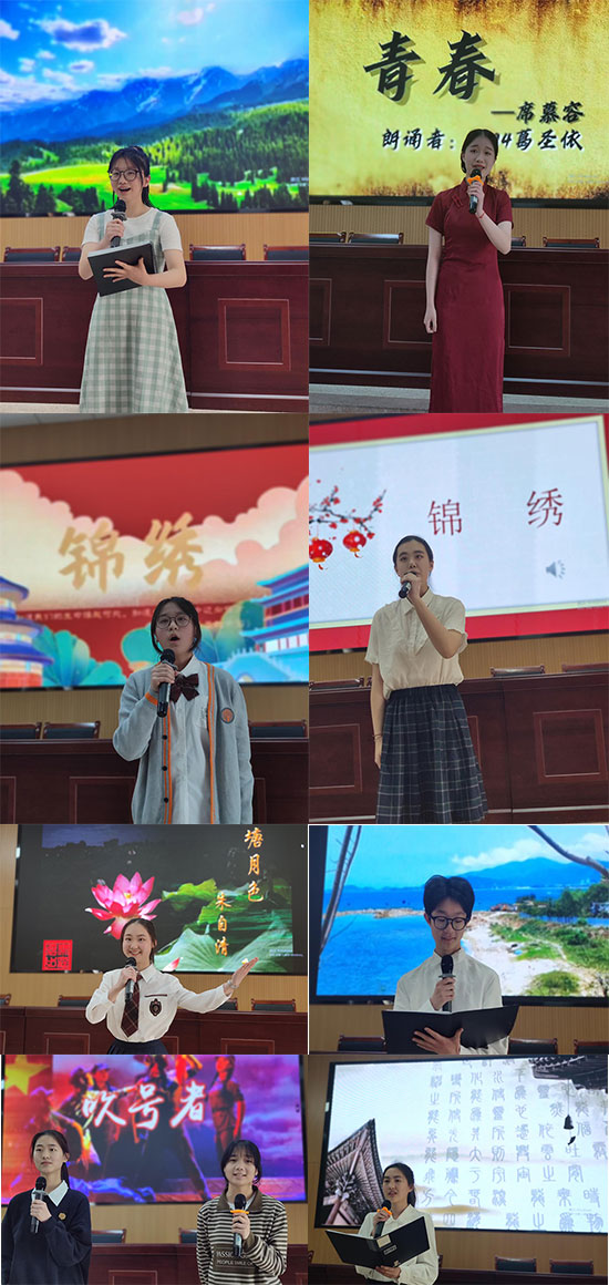 比賽當(dāng)天,現(xiàn)場共有來自不同專業(yè)部的47名選手,他們鏗鏘有力、聲情并茂地演繹了古今經(jīng)典名篇《滿江紅》《將進(jìn)酒》《相信未來》《致橡樹》等作品,展示了中國傳統(tǒng)文化經(jīng)典名篇的無窮魅力。