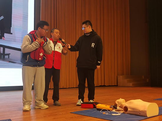 開班儀式上,國家電網湖州供電公司電力醫生、浙江省紅十字一級應急救護培訓師閔華為全體學生作理論培訓。他結合大量真實案例,以場景模擬、互動教學、親身體驗等多樣化的模式,圍繞心肺復蘇、異物梗住、燒燙傷處理、創傷包扎等內容進行詳細講解,幫助大家在遇到突發事件時能夠準確迅速采取有效急救措施,提高風險防范意識,增強自救互救能力。后續,湖州市紅十字會也會派志愿者為畢業班級進行實操培訓,所有學生將會參加嚴格的應急救護知識及技能考試,最終成為一名合格的救護員。