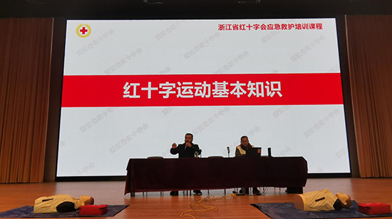 為落實教育部、中國紅十字會總會有關文件精神,加強學校應急救護工作,提高學生面對突發事故時現場應急救治的能力,初步掌握常用急救知識和現場自救互救能力,3月22日,浙江信息工程學校2023屆畢業生紅十字應急救護培訓班正式開班。本次培訓為期6天,由湖州市紅十字會、吳興區紅十字會和學校共同組織,學校13個畢業(實習)班的500余名學生參加培訓。學生處處長姜寶東主持開班儀式,并對同學們提出了踏實學習救護知識、技能,體會并踐行國際紅十字運動基本原則(人道、公正、中立、獨立、志愿服務、統一和普遍)等培訓要求。