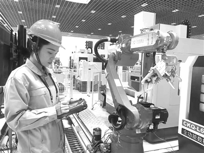 杭州科技職業技術學院學生在進行工業機器人操作。資料圖片
