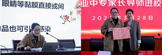 21跨境電商3+2班的羅森洋媽媽是一名醫生,當日她走進課堂帶領大家學習“傳染病防控”,引領同學們掌握傳染病防控的綜合措施。羅森洋媽媽從四個方面為同學們科普了傳染病防控知識:正確認識流行性感冒;流感的傳播途徑;流感的主要癥狀;流感的預防和治療。