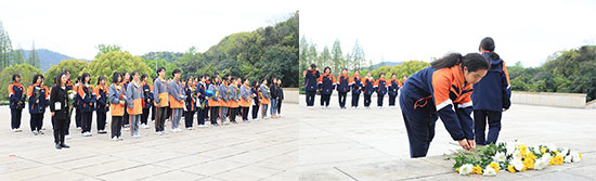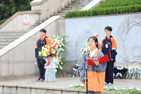 先輩回眸應笑慰,擎旗自有后來人。浙江省湖州藝術與設計學校學生干部代表顧淑婷同學在紀念碑前發言中這樣說道:“我們要繼承先烈遺志,發揚先烈的革命精神,不怕吃苦,不怕困難。強健體魄,健康成長;誠實勇敢,自律自強;振興中華,再造輝煌!”