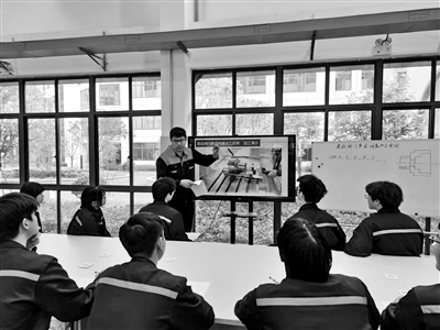 在中高職銜接共同體——永嘉學(xué)院,閥門專業(yè)教師在智能制造實訓(xùn)現(xiàn)場給學(xué)生講解閥門零件的加工工藝流程。本報記者 鐘偉 攝