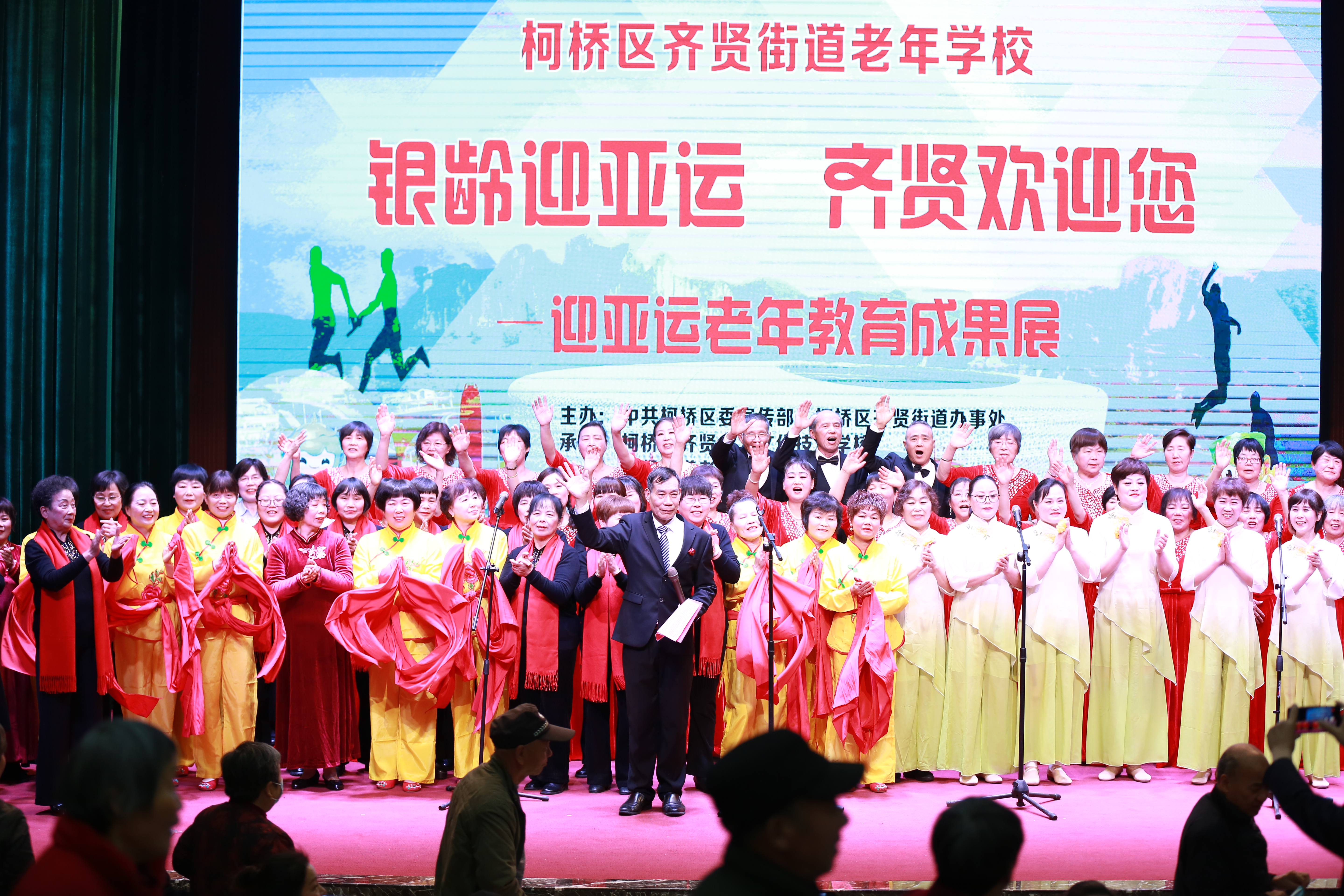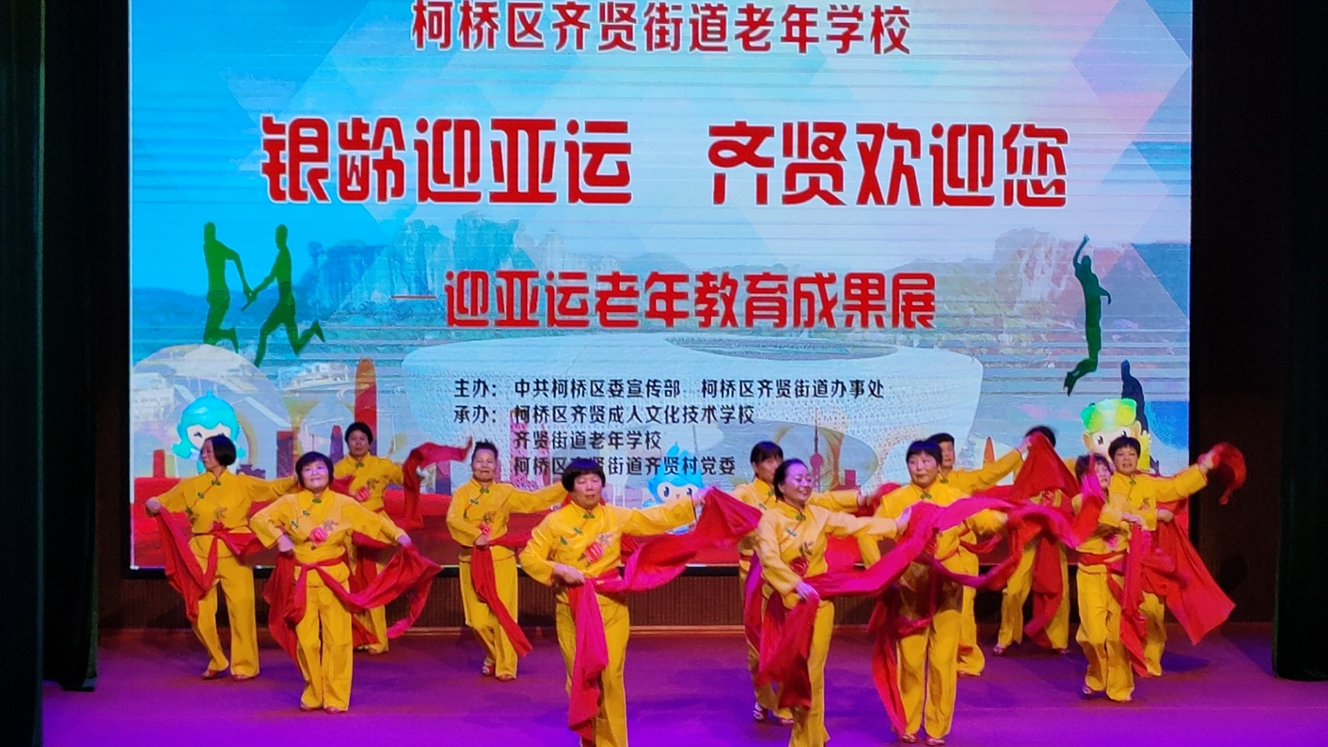 4月8日晚,“銀齡迎亞運,齊賢歡迎您——柯橋區(qū)齊賢街道老年學校迎亞運老年教育成果展”在齊賢村文化禮堂周末劇場演出。柯橋區(qū)老干部局副局長、區(qū)老年大學副校長王慧、齊賢街道組織委員陳瑩、齊賢成人技術學校校長馮明海,齊賢村黨支部書記沈建利、齊賢街道文化站站長高弋捷與群眾們一起觀看演出。