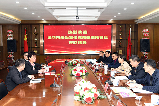 4月14日下午,金華市教育局黨組成員、總督學徐春艷、市司法局普法與依法處理處處長傅國建、市教育局政策法規處處長肖金澎、市司法局普法與依法處理處張安平、市教育局政策法規處湯永根等一行蒞臨金華實驗中學,調研指導青少年法治宣傳教育基地建設工作。婺城區教育局副局長倪寧健、區教育局政策法規科科長洪丹等陪同調研。