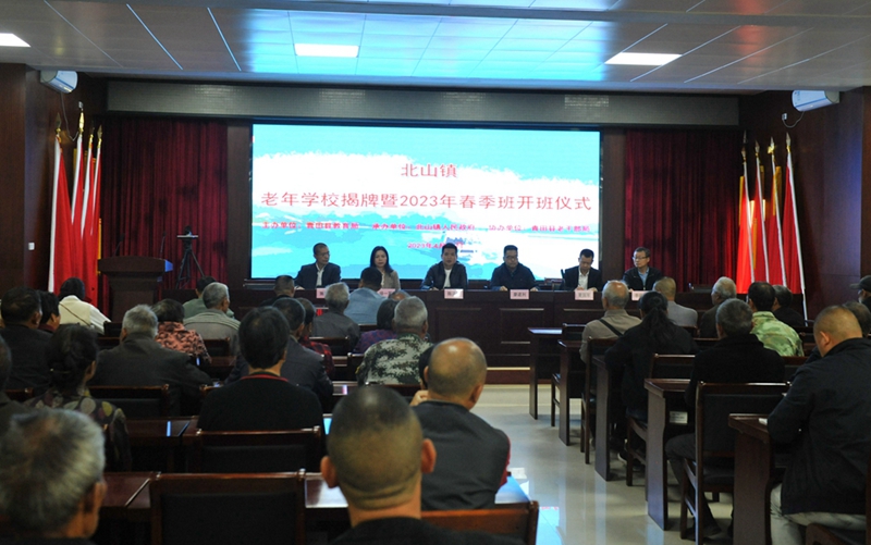 在熱烈的掌聲中,廖建利和陳慧共同為北山鎮(zhèn)老年學校揭牌。