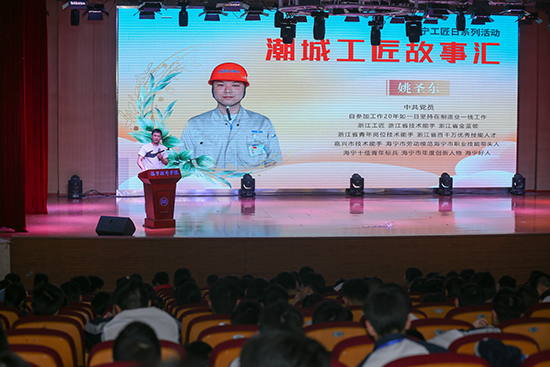 4月18日上午,由潮城工匠政協委員會客廳、海寧市教育局及海寧技師學院聯合舉辦的“海寧工匠日”系列活動之“潮城工匠故事匯”,在沈鴻紀念館800人報告廳順利舉行。四位來自制造業領域的技能大師、工匠在現場講述了他們奮斗成長、技能立身的故事,海寧技師學院智能制造系學生代表700余人到場聆聽。