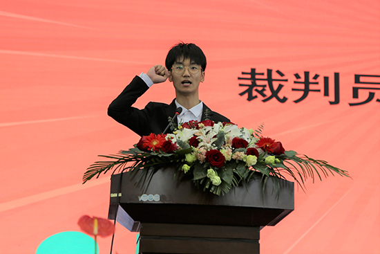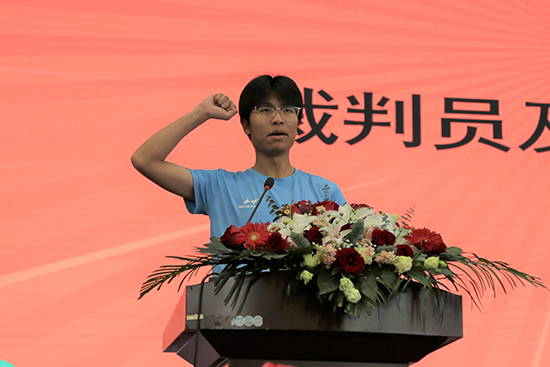 裁判員代表金小飛老師、運動員代表喻逸揚同學代表裁判團隊和全體運動員宣誓。