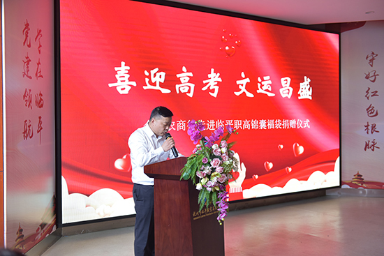 捐贈儀式首先由陳總經理致辭,陳總經理充分肯定學校的教風學風,高度認可學校近年來取得的成績。勉勵高三學生在高考來臨之際,要保持平穩心態、沉著應考,并祝福考生在高考中筆下生花、金榜題名。同時陳總經理表示,希望以后能更深入合作,共促發展。