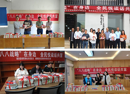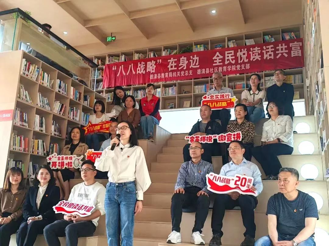 結合“八八戰略”20周年,4月19日至23日,德清縣社區教育學院黨支部在縣教育局機關黨總支的聯合下,和4個街鎮社區教育分院(中心)黨支部開展了“‘八八戰略’在身邊 全民悅讀話共富”送書文化惠民活動。
