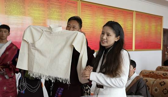 最后,學生代表互贈民族特色禮物,并做交流發言。富陽職教中心學生代表詳細介紹了學校香囊社團和香囊的觀賞、禮儀、藥用、裝飾等功能。那曲職校學生代表展示了九眼不滅金剛手繩、藏式傳統包、藏袍、藏式圍裙等親手制作的禮物。兩校學生代表共同表達了團結之情,希望通過禮物促進東西部民族團結,傳遞幸福,共同成長。