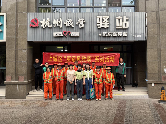 4月13日下午,筧橋街道社區(qū)學(xué)校聯(lián)合街道公管辦及轄區(qū)培訓(xùn)機(jī)構(gòu)藍(lán)星球創(chuàng)意圖書館,在杭州城管驛站筧東嘉苑站開展“亞運(yùn)風(fēng)雅頌”活動(dòng),為轄區(qū)環(huán)衛(wèi)工人打造了一堂關(guān)于垃圾分類的英語課,現(xiàn)場學(xué)習(xí)氣氛濃厚。