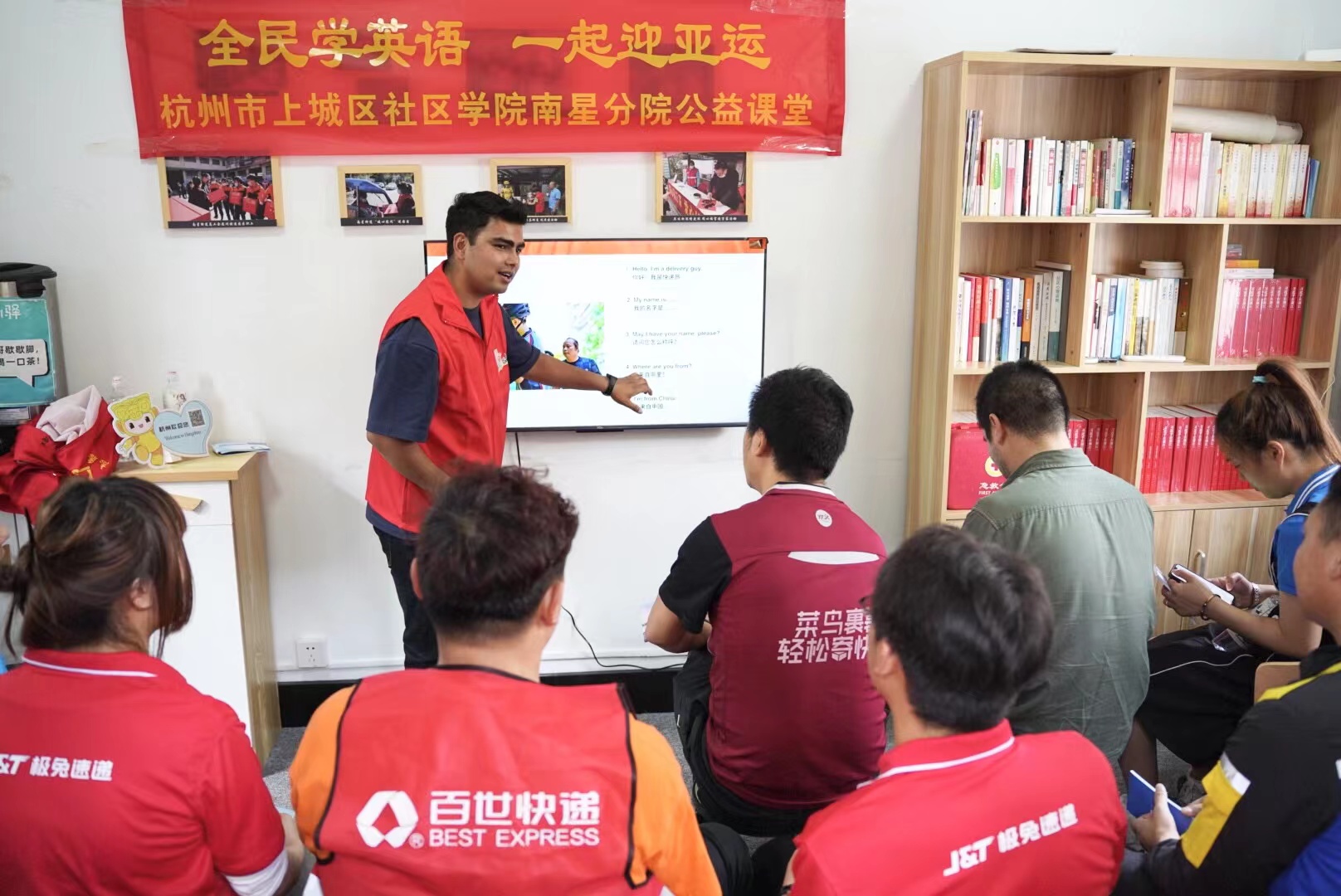 “馬上就要召開亞運(yùn)會(huì)了,我們工作中可能會(huì)遇到不少國際友人,這次活動(dòng)非常有意義,幫助我們可以更好地與他們溝通,為亞運(yùn)助力!”來自極兔快遞的李金軍說道。