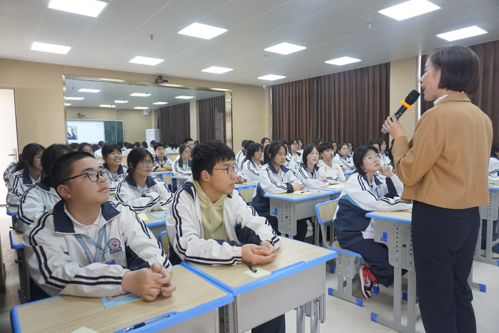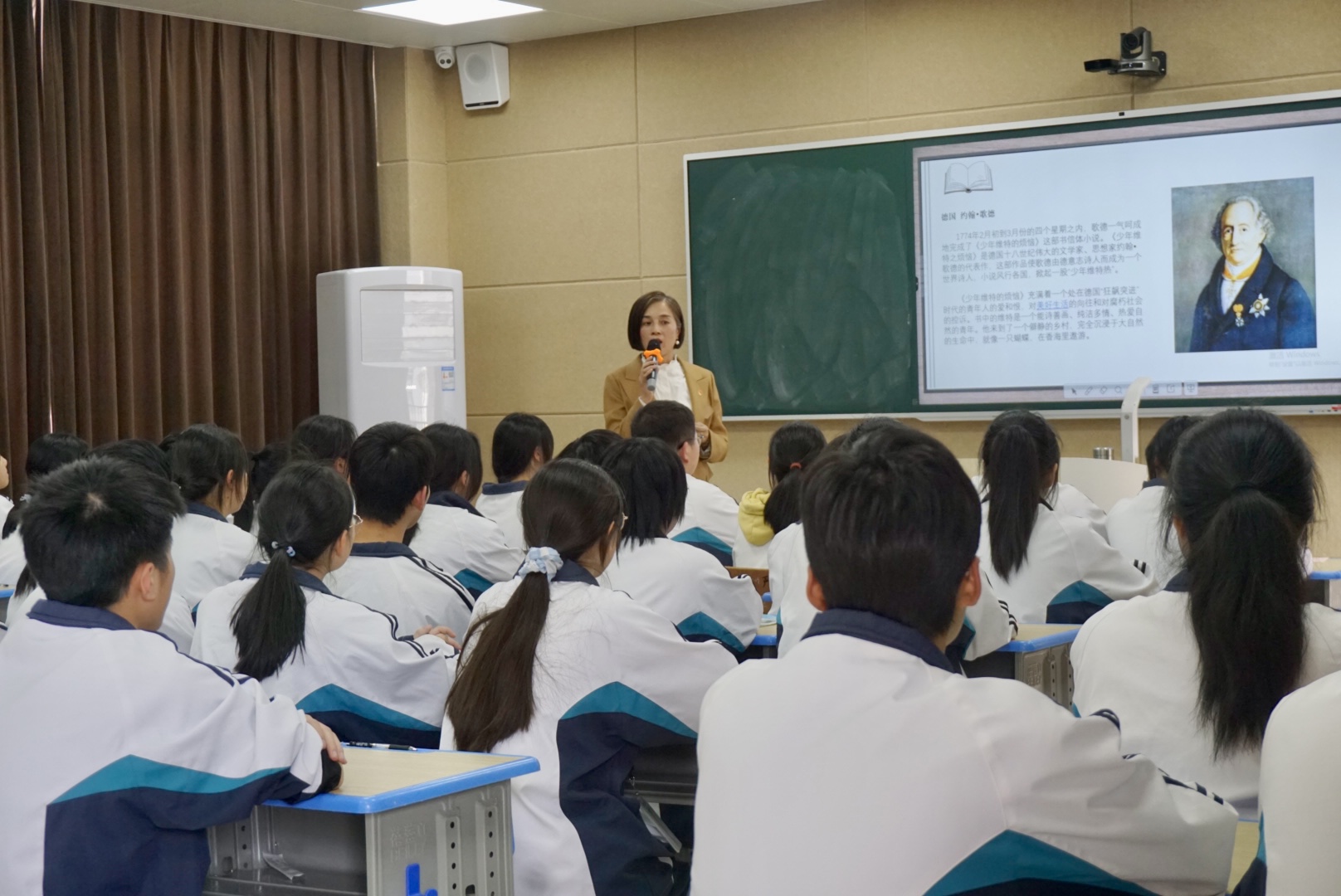 黃梅寶老師以德國作家歌德的小說《少年維特的煩惱》導入,與同學們分享了小說中最熱烈、美好的愛情故事,并借小說題詩“哪個少年不鐘情,哪個少女不懷春,這是我們人性中的至神至圣啊”,表現出對少年時期學生的心理特點的理解。