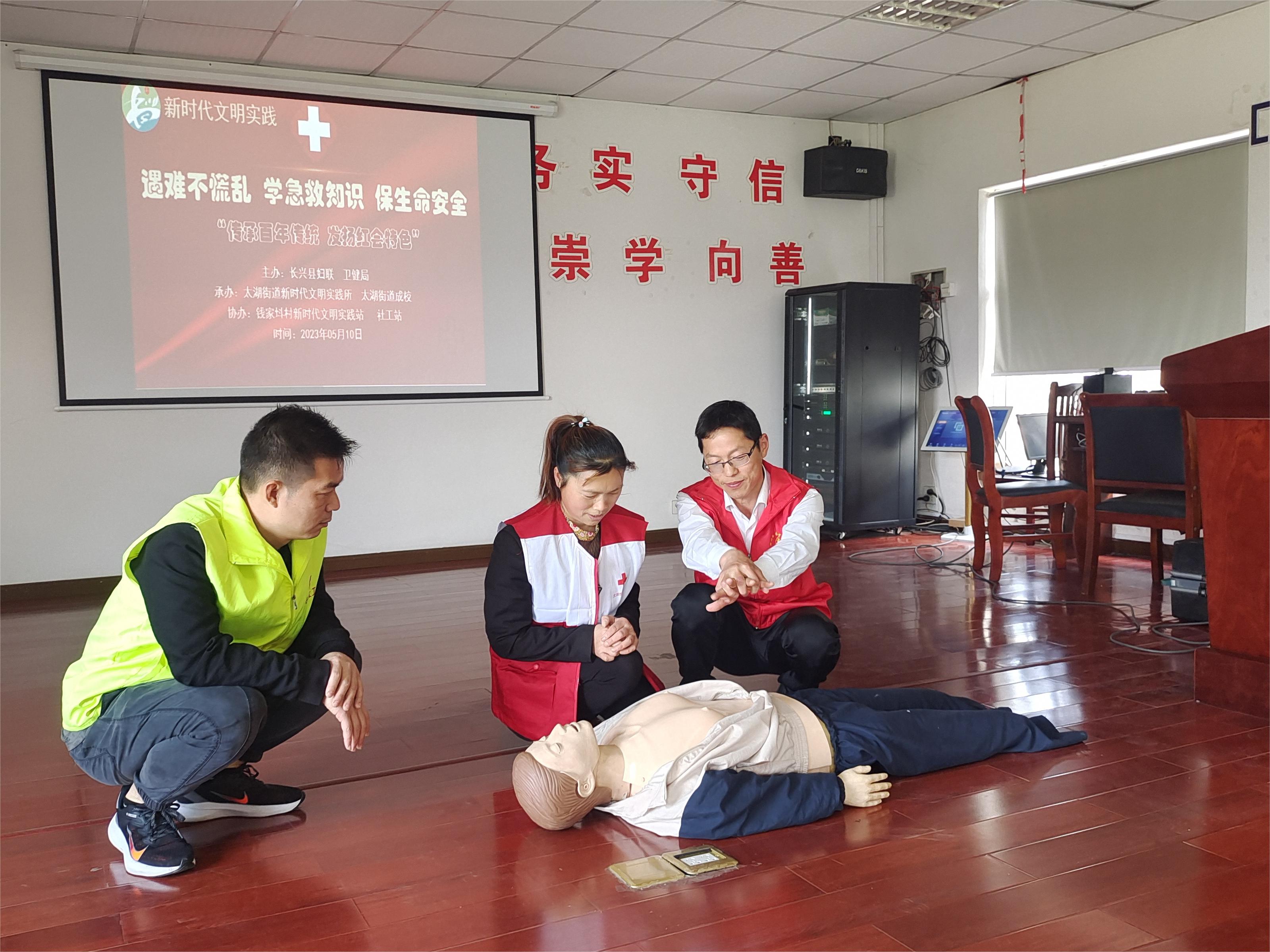 為提高轄區(qū)老年人在日常生活、突發(fā)事件中的自救互救能力,5月10日上午,長興縣雉城中心成人文化技術(shù)學(xué)校聯(lián)合太湖街道錢家斗村開展“遇難不慌亂 學(xué)急救知識 保生命安全”老年人急救知識培訓(xùn)活動(dòng)。