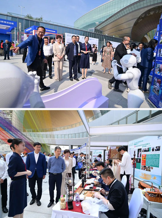 ▲浙江省教育廳黨組成員、副廳長于永明一行蒞臨嘉興技師學(xué)院職業(yè)體驗展位和非遺特色展位