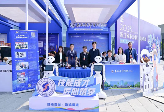 ▲嘉興技師學(xué)院黨委書記、校長張永芳與參展師生