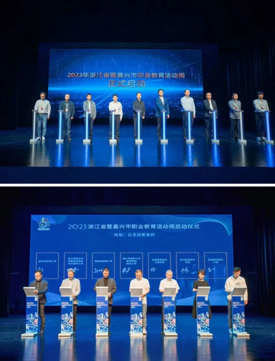 5月13日,2023年浙江省職業教育活動周啟動儀式在嘉興文化藝術中心舉行。浙江省教育廳黨組成員、副廳長于永明,嘉興市委常委、副市長齊力等出席啟動儀式。嘉興職業技術學院黨委委員、副校長樓平參與“百千萬”職普融通行動簽約儀式。學校師生的作品精彩亮相職教周,贏得現場領導和與會嘉賓頻頻點贊和好評。