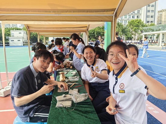 首先進行的是“能工巧匠進校園”活動展示體驗。47個攤位按職業體驗區、非遺傳承區、直通未來區依次排開。樂清職專學生作品在非遺傳承區展示,攤位前人頭攢動。樂清市教育局王旭良副局長、屠樂勇老師、教師教研院金征宇老師等紛紛駐足觀賞,并給予高度好評。在攤位的非遺體驗區域,樂清職專瞿灝源同學現場動手演示泥塑造型。樂清職專黃楊木雕展區歡聲笑語不斷,吸引了一撥又一撥中學生圍觀體驗。