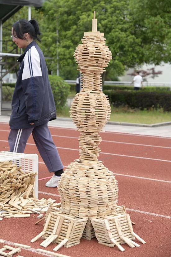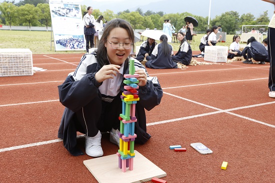 藍新章宣讀了比賽規程。本次活動第一個環節是智力玩具接力大闖關,5名選手組成一個團隊,接力完成獨立鉆石棋、技巧球、漢諾塔、傷腦筋十三快、數字華容道5個項目;第二個環節是卡譜樂積木創意堆搭;第三環節為學生個人單項賽事;第四環節為教師個人單項賽事。最后他預祝老師、同學們賽出風格、賽出佳績。