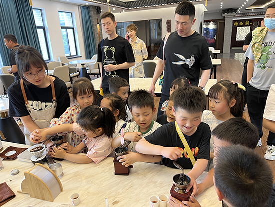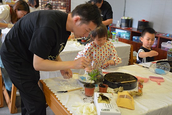 在旅游與酒店職業(yè)體驗(yàn)中心,濃濃的咖啡香一下子吸引了大家。小朋友們齊動(dòng)起手,試試研磨咖啡豆,了解手沖咖啡的故事。參觀了盤(pán)扣實(shí)訓(xùn)室里精美的非遺盤(pán)扣作品,大家一起坐下來(lái)聽(tīng)敖素燕老師帶來(lái)精彩的微景觀制作課堂。孩子們和爸爸媽媽一起,認(rèn)真聆聽(tīng),并在老師指導(dǎo)下,動(dòng)手制作獨(dú)一無(wú)二的作品。