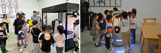 孩子們和家長(zhǎng)們?cè)趯W(xué)校實(shí)訓(xùn)處副主任陳佳嬡和學(xué)校園藝專(zhuān)業(yè)教師周偉仙的帶領(lǐng)下,從夢(mèng)想廣場(chǎng)出發(fā),來(lái)到智慧大棚和勞動(dòng)基地,與大自然親密接觸,體驗(yàn)傳統(tǒng)農(nóng)業(yè)技術(shù)、現(xiàn)代工程技術(shù)、現(xiàn)代信息技術(shù)綜合運(yùn)用結(jié)合在一起的“智慧農(nóng)業(yè)栽培系統(tǒng)”,感受現(xiàn)代農(nóng)業(yè)的魅力。在學(xué)校實(shí)訓(xùn)基地,一排“專(zhuān)業(yè)融清”的平面設(shè)計(jì)作品映入大家眼簾,“清廉IP”規(guī)規(guī)矩矩在和小朋友打招呼,在孩子的心中種下一顆“廉潔”的種子。在汽修職業(yè)體驗(yàn)中心,孩子們被汽車(chē)模型深深吸引,“這就是汽車(chē)肚子里的秘密嗎?”“汽車(chē)是喝汽油的,汽油裝在哪里呀?”“什么是新能源汽車(chē)?”張科鋒老師為孩子們一一解答,“汽車(chē)創(chuàng)意夢(mèng)”由此啟動(dòng)。剛走進(jìn)物聯(lián)網(wǎng)職業(yè)體驗(yàn)中心,可愛(ài)的服務(wù)機(jī)器人就向孩子們打招呼了。在朱鑫浩老師的引導(dǎo)下,一起了解“萬(wàn)物互聯(lián)”的神奇世界。