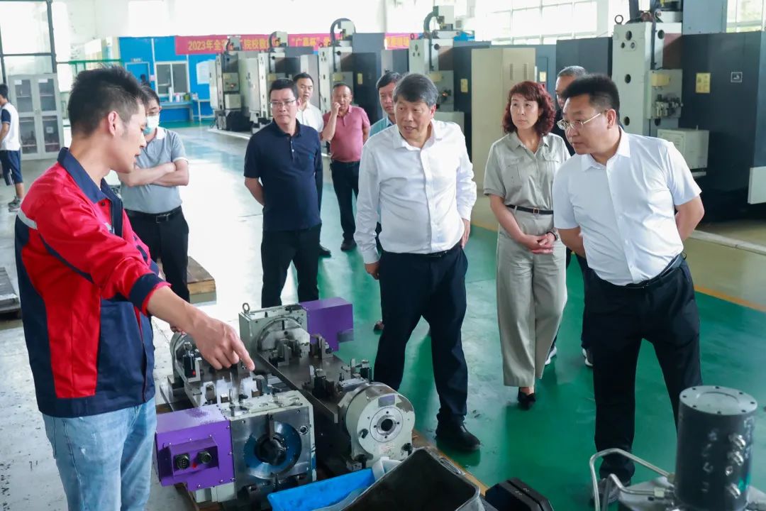 參觀了國(guó)際會(huì)展中心的世界五金精品館后,考察團(tuán)隨即前往五金產(chǎn)業(yè)技能人才培養(yǎng)基地:永康職技校、永康五金技師學(xué)院。在學(xué)校的產(chǎn)學(xué)研中心,眾人走訪了實(shí)驗(yàn)室、車間、技術(shù)研發(fā)中心等區(qū)域,校領(lǐng)導(dǎo)王鐘寶、吳勇、胡贊等向來(lái)賓介紹了學(xué)校發(fā)展現(xiàn)狀、人才培養(yǎng)模式、產(chǎn)教融合成果與“東遷西歸”項(xiàng)目推進(jìn)現(xiàn)狀。