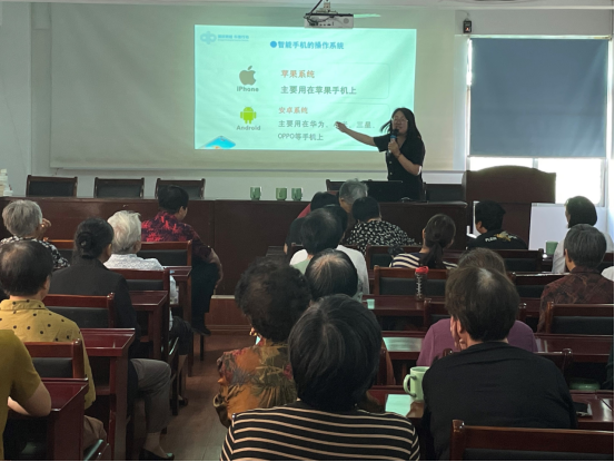 活動中,邀請來講課的龍泉中職校的曾少梅老師采用視頻教學和現場講座相結合的方式,用通俗易懂的方言,直觀幫助老年人掌握使用智能手機的基本操作、設置模式等。
