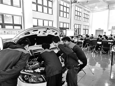 溫州職業技術學院瑞安學院新能源汽車專業教師在新能源汽車實訓基地給學生講解電動汽車的工作原理。陳先池 攝