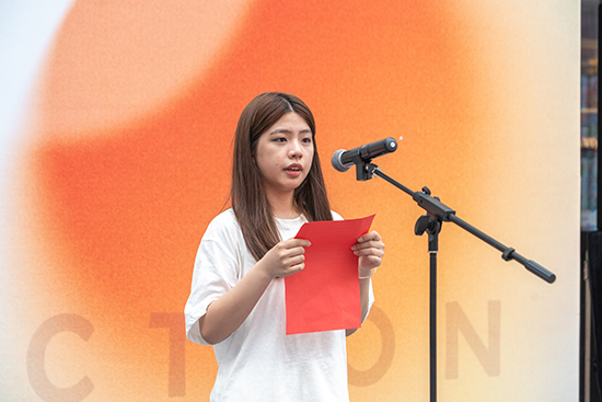 中職藝術203班史超怡、大專22廣告沈鑫磊作為學生代表上臺發言,在這個充滿創造力和無限想象力的舞臺上,他們用畫筆,描繪出了絢爛奪目的青春色彩。