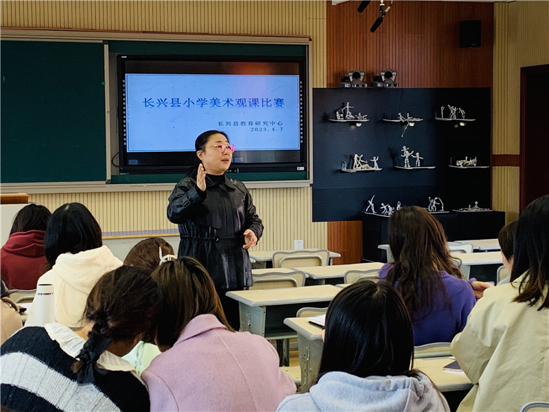 觀摩課例展示,提升課堂技能。全體學員分成小學、中學組分別到長興一小、長興林城中學觀摩了來自湖州市6位名師的精彩課例。長興縣美術教研員高穎老師進行了觀課報告微講座,并組織學員進行美術觀課評論比賽。名師們基于“雙減”“新課標”理念背景下的生動課例,為學員們提供了互相學習、交流的機會。