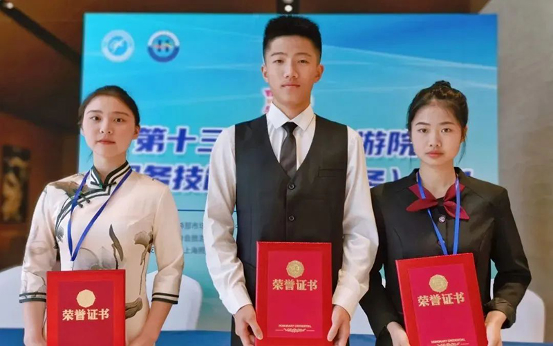 5月14日,德清職業中專旅游專業三位同學獲第十三屆全國旅游院校服務技能(飯店服務)大賽中餐宴會擺臺、雞尾酒調制和中式鋪床賽項全國三等獎。