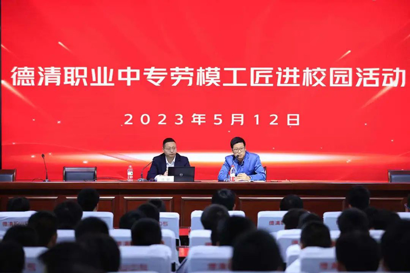 5月10日下午,德清職業中專開展了勞模工匠進校園活動。活動邀請湖州南豐機械制造有限公司項目經理談敏為學校數控、汽修、工業機器人、機電等專業的300多名學生作講座。談敏以《堅守初心,做新時代逐夢人》為主題,介紹了公司的基本情況、生產工藝、技術創新,并用樸實的語言分享了個人由普通工人成長為技術能手的歷程,勉勵大家時刻以耐心、細心、用心、誠心、熱心、信心的“六心”要求自己,傳遞了勇于創新、追求卓越的勞模精神,讓師生們近距離感受到了新時代的勞模風采,激發了勤奮學習、報效祖國的濃厚熱情。